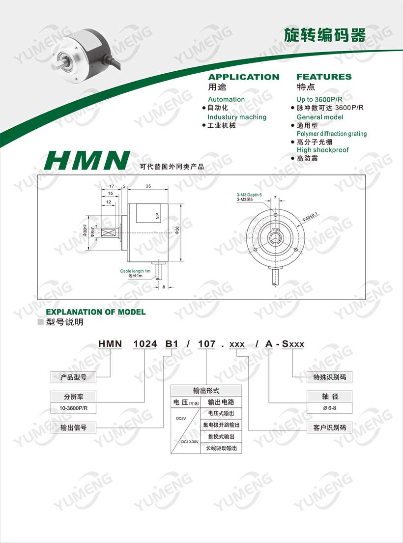 歡迎您訪問上海禹盟編碼器生產(chǎn)廠家,禹盟主營(yíng)產(chǎn)品:上海光電旋轉(zhuǎn)編碼器,磁電式編碼器,復(fù)合式編碼器,總線編碼器,冶金起重變頻電機(jī)專用編碼器等。